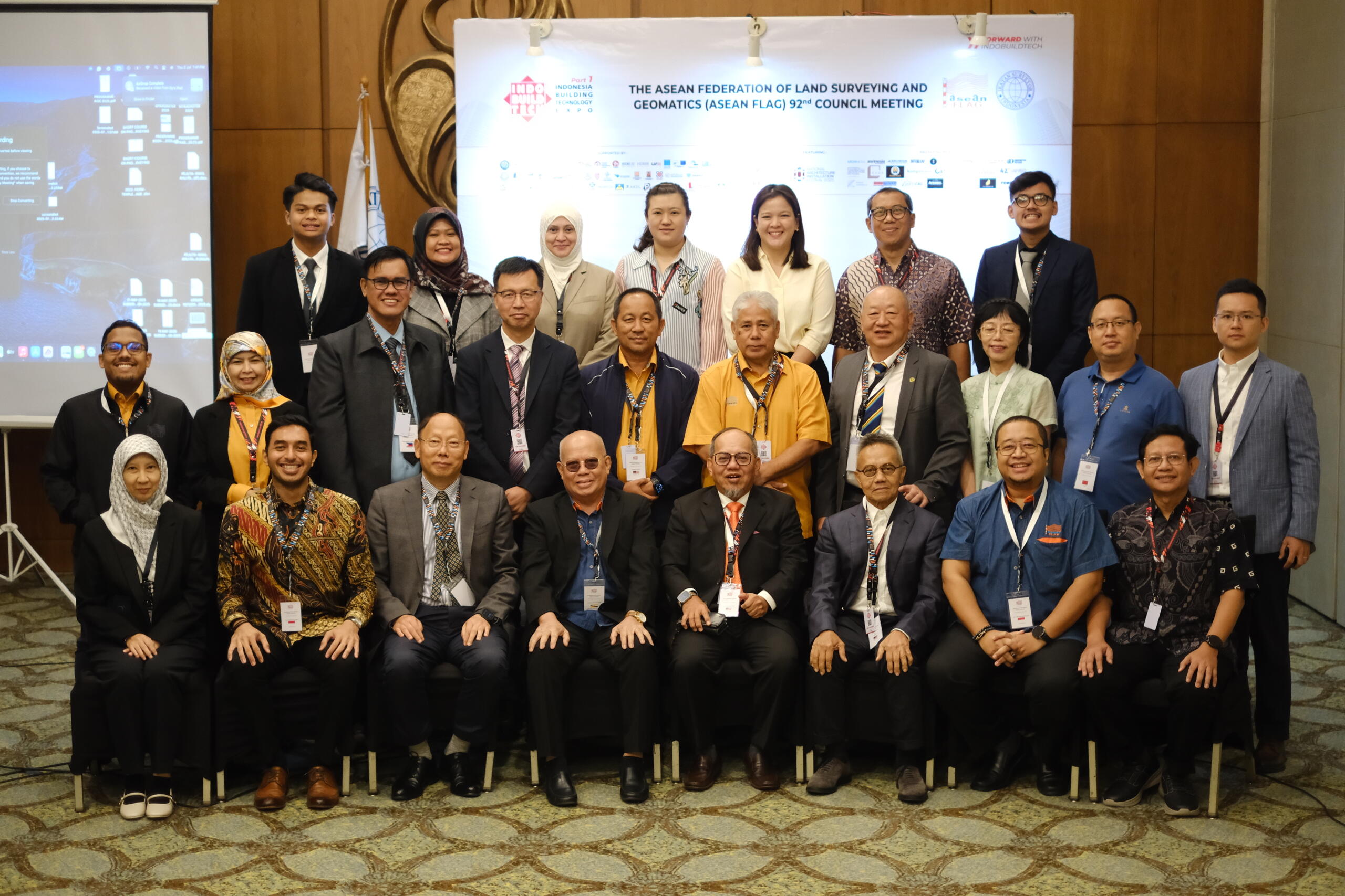 Hosted by the Ikatan Surveyor Indonesia (ISI) and the Asosiasi Perusahaan Survey dan Pemetaan Informasi Geospasial (APSPIG), the 92nd ASEAN FLAG Council Meeting was held at the Indonesia Convention Exhibition (ICE), Tangerang, Jakarta, Indonesia, on 3rd July 2025. The meeting was held in conjunction with the INDONESIA BUILDING TECHNOLOGY EXPO, which took place from 2nd
